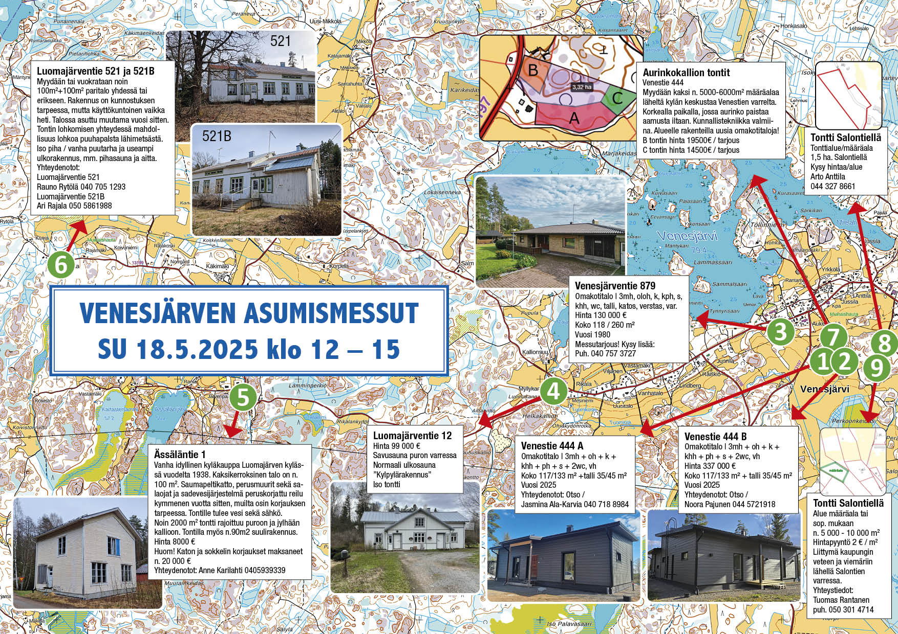 Löydä unelmiesi koti tai tontti idyllisestä maalaiskylästämme! Venesjärvellä järjestetään ainutlaatuinen messupäivä, jossa esittelyssä on kuusi myytävää kotia sekä omakotitontteja. Jokaisella esittelytalolla on oma esittelijä paikalla vastaamassa kysymyksiin.